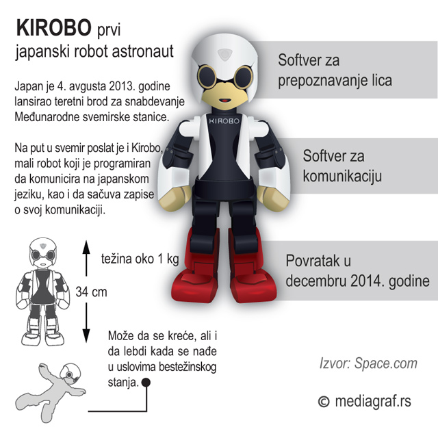 Japan je poslao u svemir Kiroba, robota astronauta koji "ume" da govori, sa zadatkom da ostvari komunikaciju na japanskom jeziku sa astronautom Koiči Vakatom.