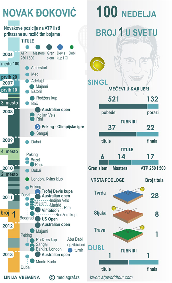 Novak Đoković, 100 nedelja na vrhu, infografika