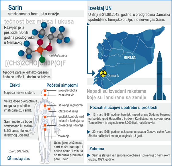 UN je objavio izveštaj kojim je potvrđena upotreba hemijskog oružja u blizini Damaska, 21. avgusta 2013. godine.